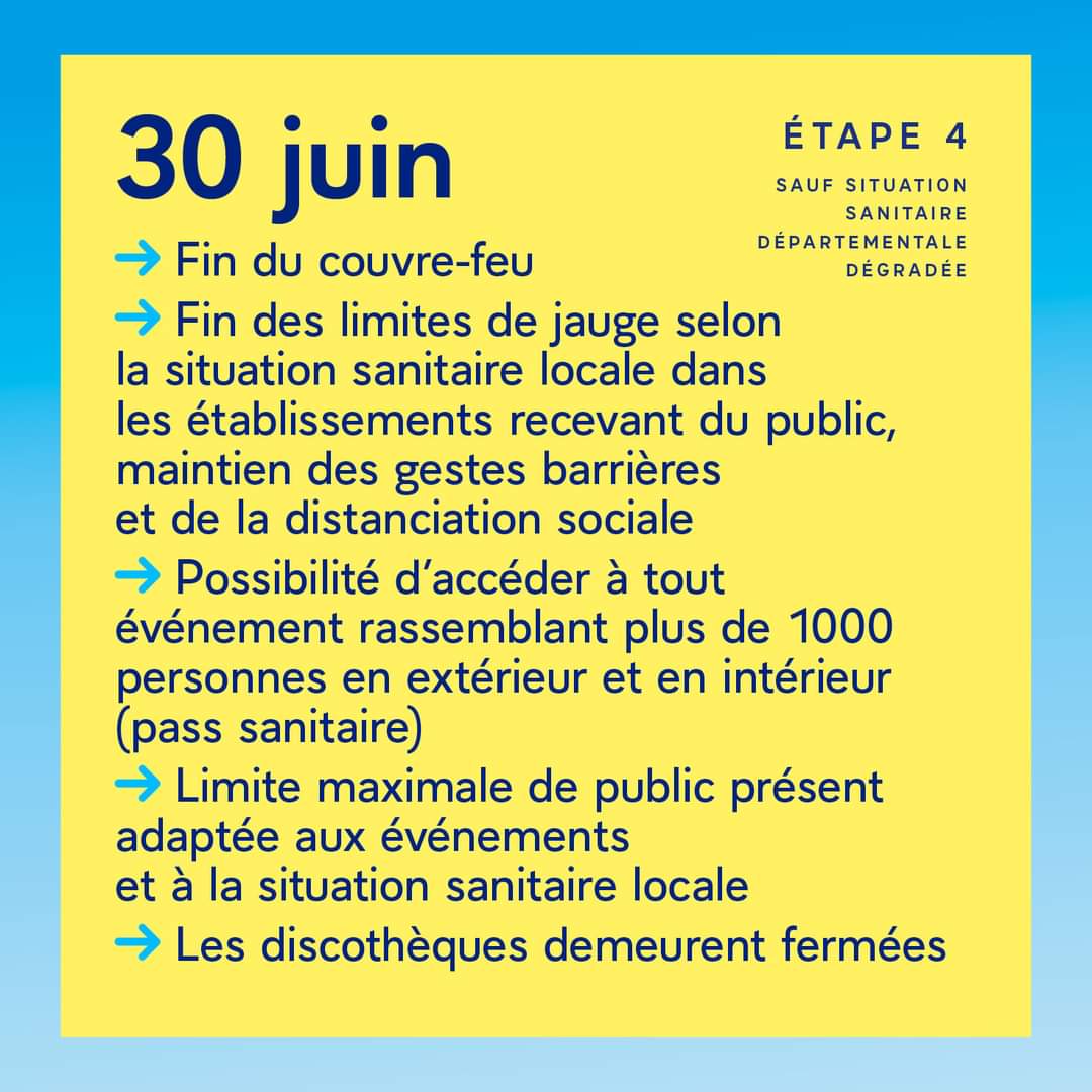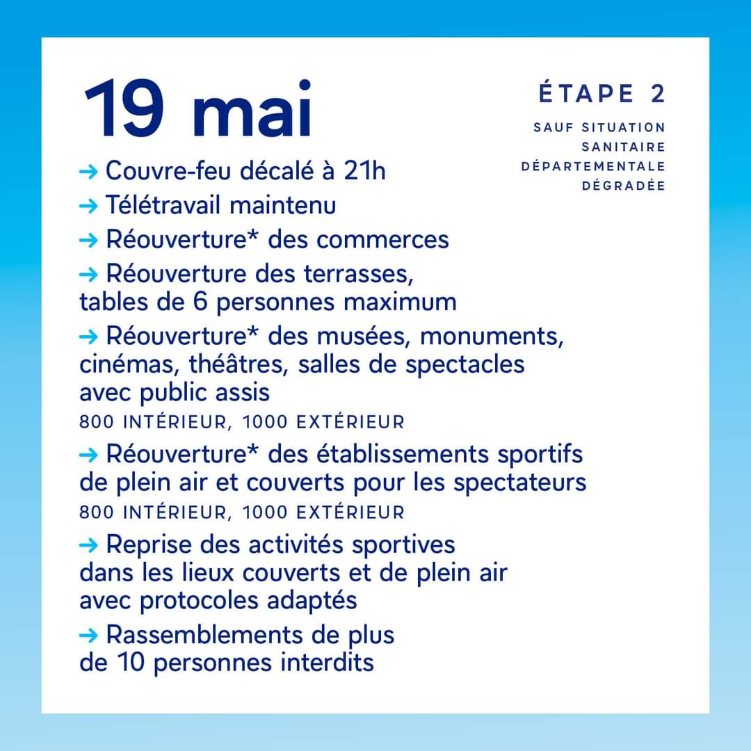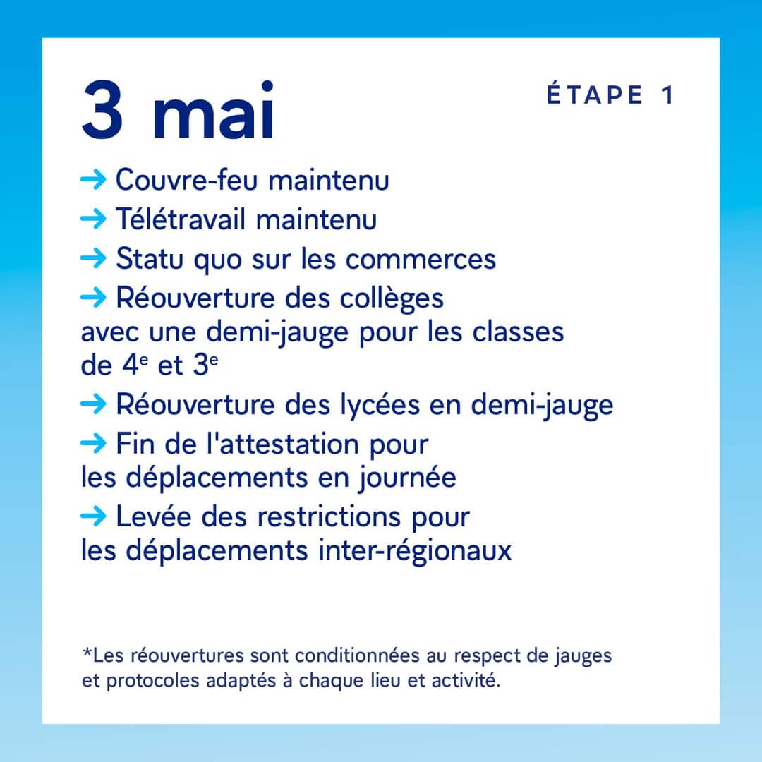 Retrouvez ci-dessous les 4 étapes du déconfinement prévues :