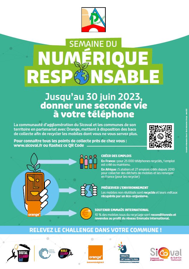 Campagne de collecte de téléphones organisée par le SICOVAL, un carton a été mis à disposition à l’accueil de la mairie.