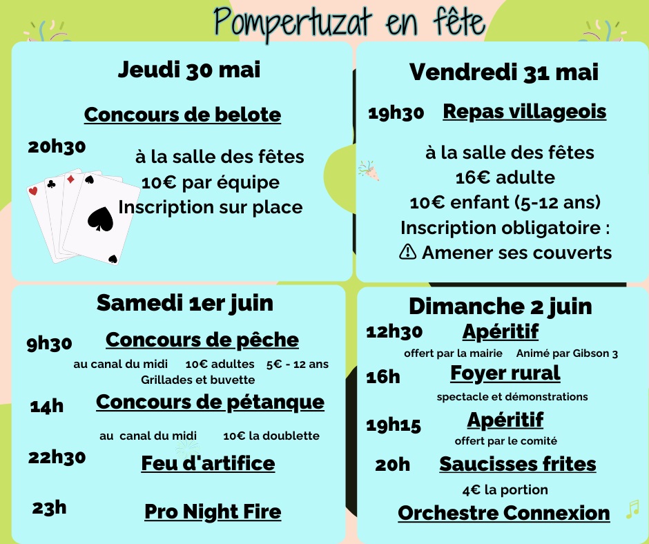 du 30 mai au 2 juin pour la fête locale !!