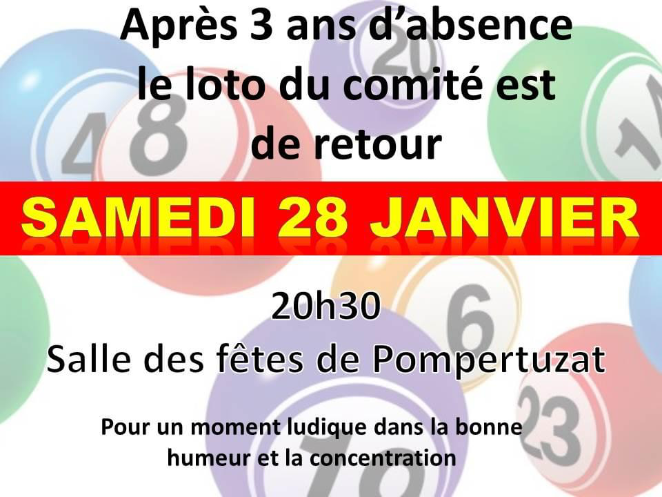 Rdv au loto du Comité des Fêtes le samedi 25 janvier à 20h30 à la salle des fêtes de Pompertuzat