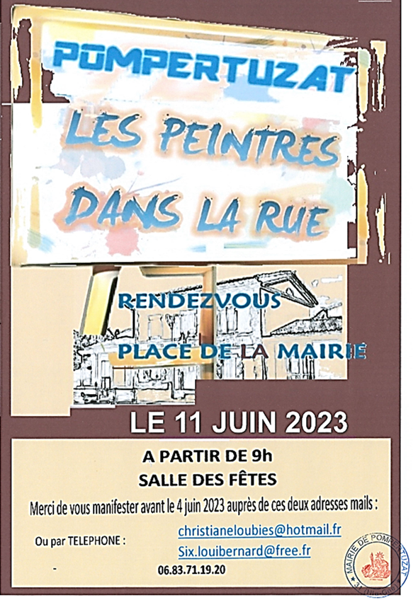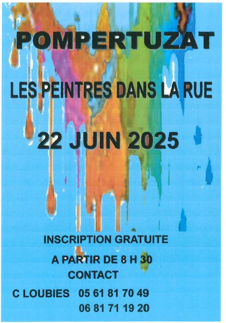 « Tous les Évènements Cet évènement est passé. Pompertuzat – Les peintres dans la rue dimanche 22 juin « Fête de la musique Forum des associations » Les peintres dans la rue le 22 juin 2025 à partir de 8h30 Inscription gratuite Ajouter au calendrier Google Agenda iCalendar Outlook 365 Outlook Live Détails Date : dimanche 22 juin Lieu Mairie 51 rue Jane Dieulafoy Pompertuzat, 31450 France + Google Map Téléphone 05 34 66 62 10 Voir Lieu site web