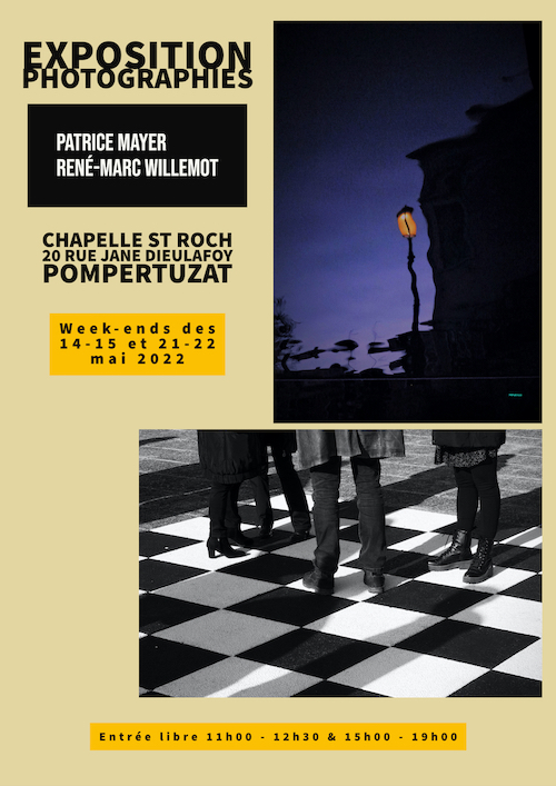 La prochaine exposition à La Chapelle Saint Roch est consacrée aux photographies de Patrice Mayer et René-Marc Willemot.