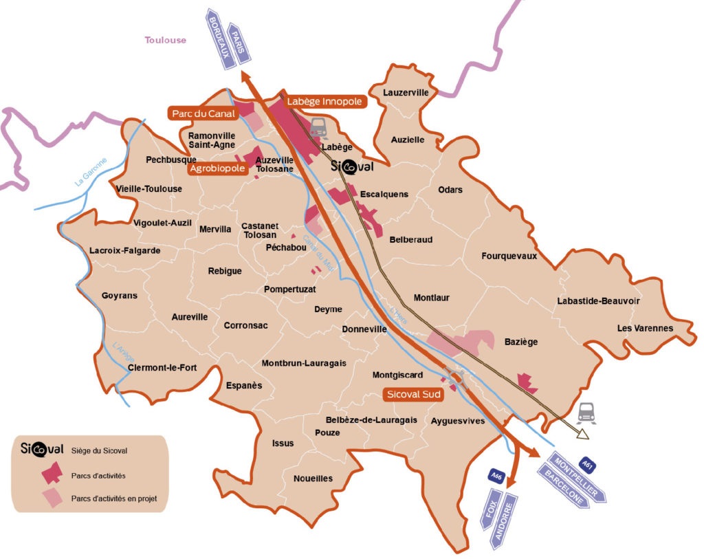Territoire de contrastes mêlant espace urbain et environnement rural, la communauté d’agglomération du SICOVAL rassemble 36 communes du sud-est toulousain.